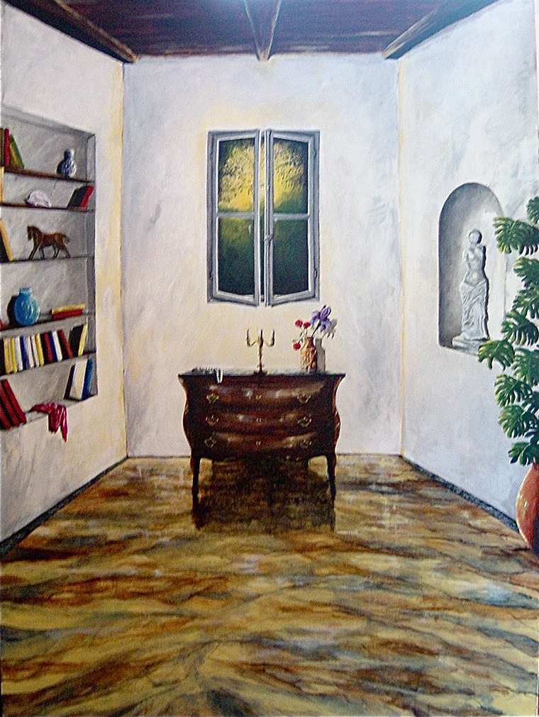 La plupart de ces décors ont été peints sur commande. Ils sont le fruit d’un imaginaire qui s’est joué en duo avec les clients, ils ont parfois relevé du « challenge », ils m’ont ouvert la porte à des techniques et un travail que je ne connaissais pas, à des amitiés que je n’envisageais pas…
