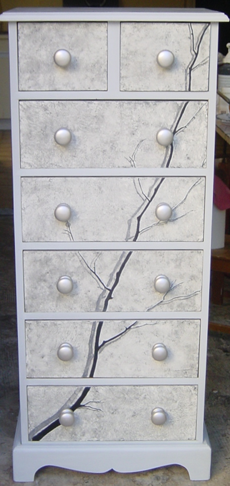 Nouvelle vie pour des meubles, trompe-l’oeil ou panneaux décoratifs qui s’insèrent dans un univers, le reflètent et l’enrichissent.